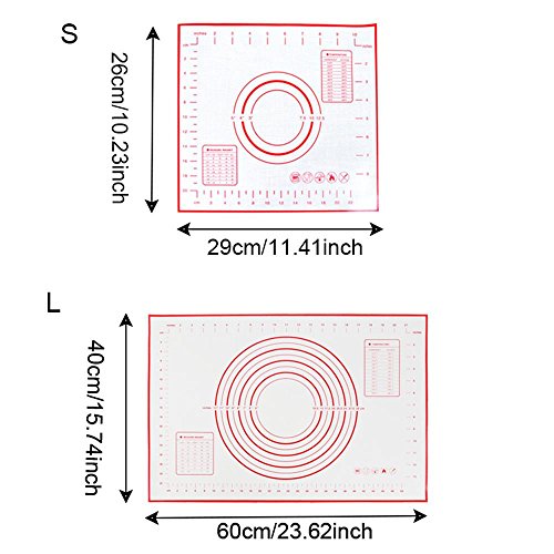 2 Pack Non-slip Silicone Pastry Mat Large with Measurements 24“ x 16â€for Rolling Dough,Silicone Baking Mat, Cookie Sheet Set,Oven Liner,Mother's Day Gifts (Red), hopefully can help you in buying the product.