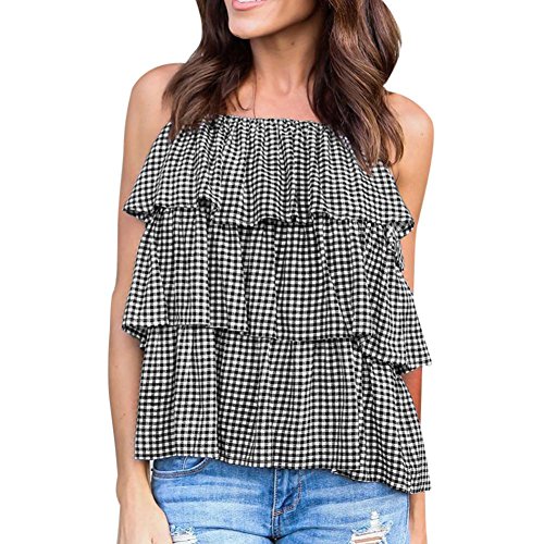AIMTOPPY Fashion Women Sexy Print Plaid Off Shoulder Sleeveless Strap Loose Chiffon Camis Top Blouse (XL, GRAY), hopefully can help you in buying the product.