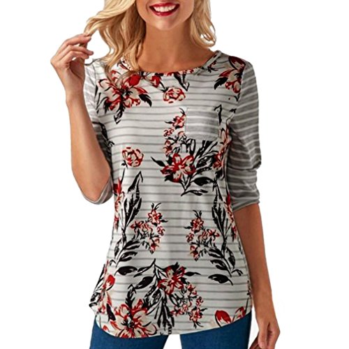 AIMTOPPY Fashion Women Spring Long Sleeve Button Back Printing Floral Tops Blouse T Shirt (XL, GRAY), hopefully can help you in buying the product.