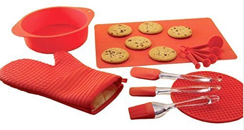 Kitchen Colllection Red Silicone Bakeware Set of 12 with Spatula Basting Brush Oven Mitt Round Cake Pan Measuring Spoon Set Non Stick Oven Liner Trivet Awesome Christmas Gifts for Her through an online shopping site.
