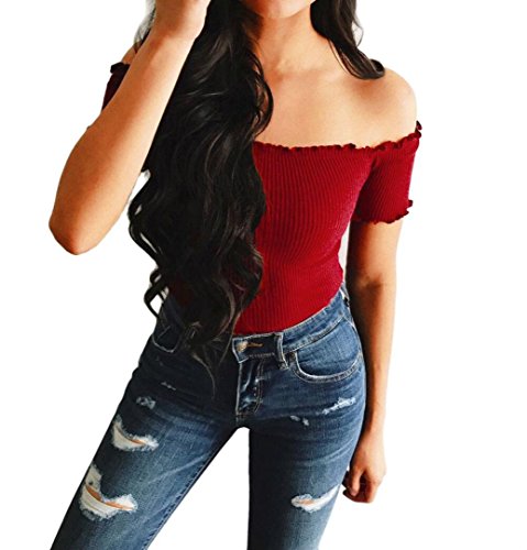 Neartime â¤ï¸Blouse Women,Hot Sale Fashion 2018 New Valentine's Sexy Solid Strapless Off Shoulder Short Tops Vest (â¤ï¸AsianM, Red) through an online shopping site.