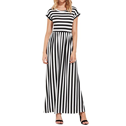 Neartime Clearance! â¤ï¸ Long Dress, Women's Casual Short Sleeve Elastic Waist Striped with Pockets Ankle-Length Skirts (â¤ï¸AsianXL, Black) through an online shopping site.
