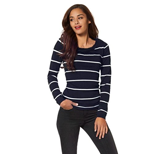 Women Blouse New Hot Sale Fashion Christmas Winter Warm Striped Casual Long Sleeve Slim Skinny Basic T-Shirt Blouse Top by Neartime (M, Navy), hopefully can help you in buying the product.