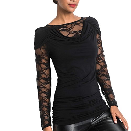 Women Blouse New Hot Sale Fashion Christmas Long Sleeve Lace Patchwork Shirt Casual Blouse Loose Cotton Tops T-Shirt by Neartime (XL, Black).